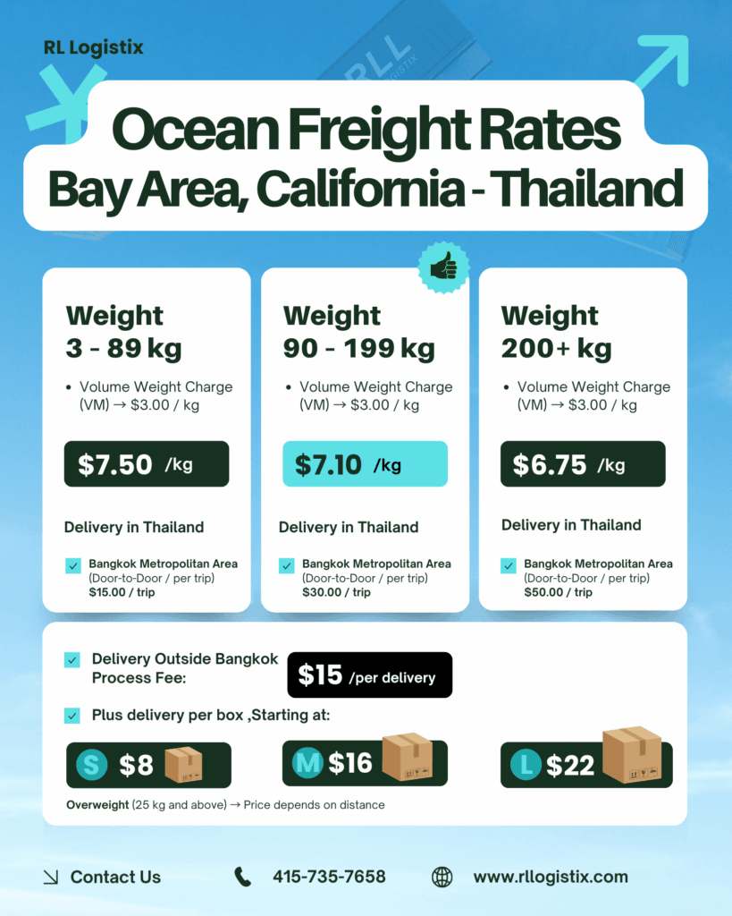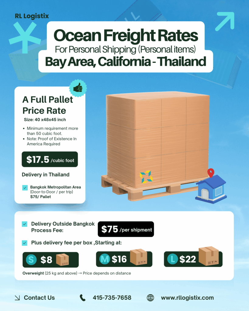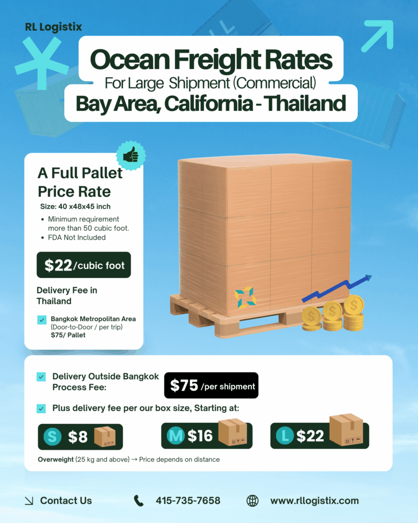 Shipping cost in Bangkok Metropolitan /address: $75/pallet